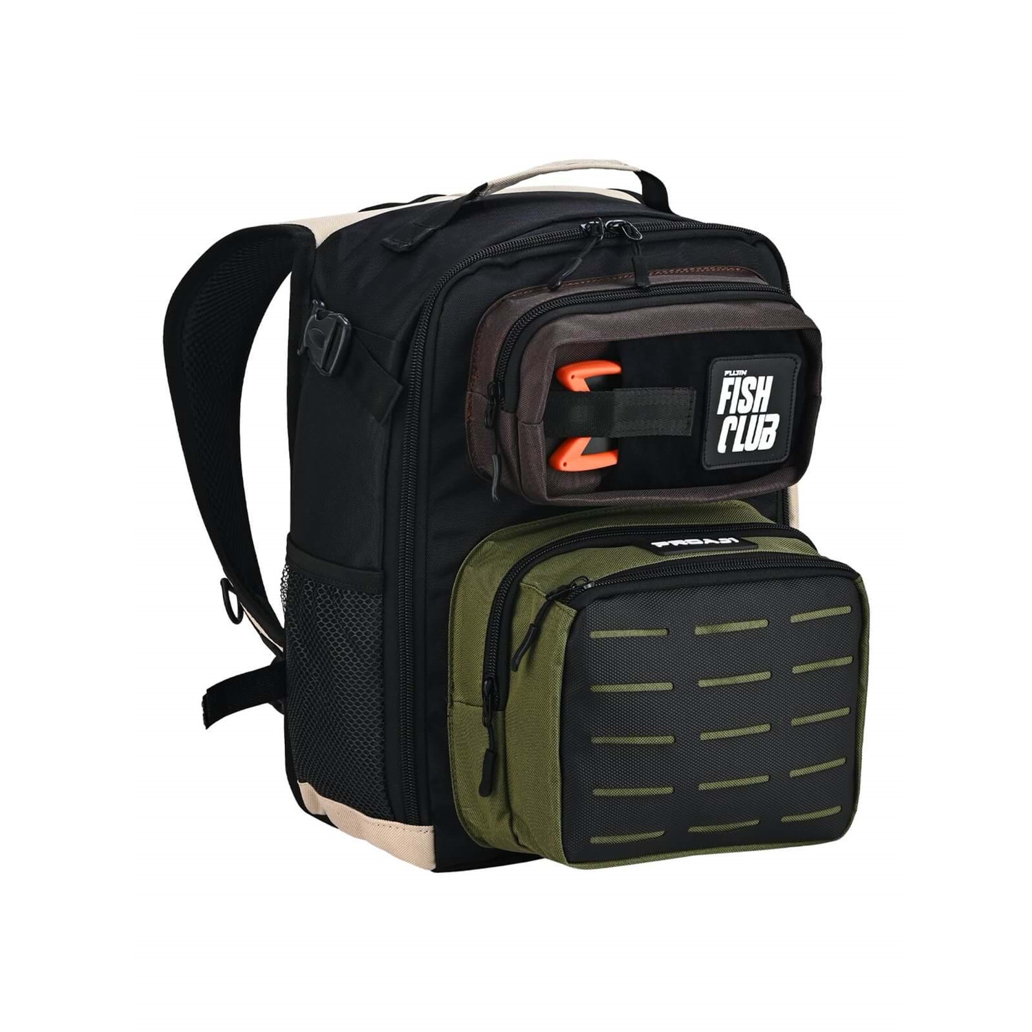 Katmanlı ön cep yapısı: Üst, orta ve alt olmak üzere üç ayrı ön cep; takım kutuları, lider makaraları ve aksesuarlar için mükemmel düzen.