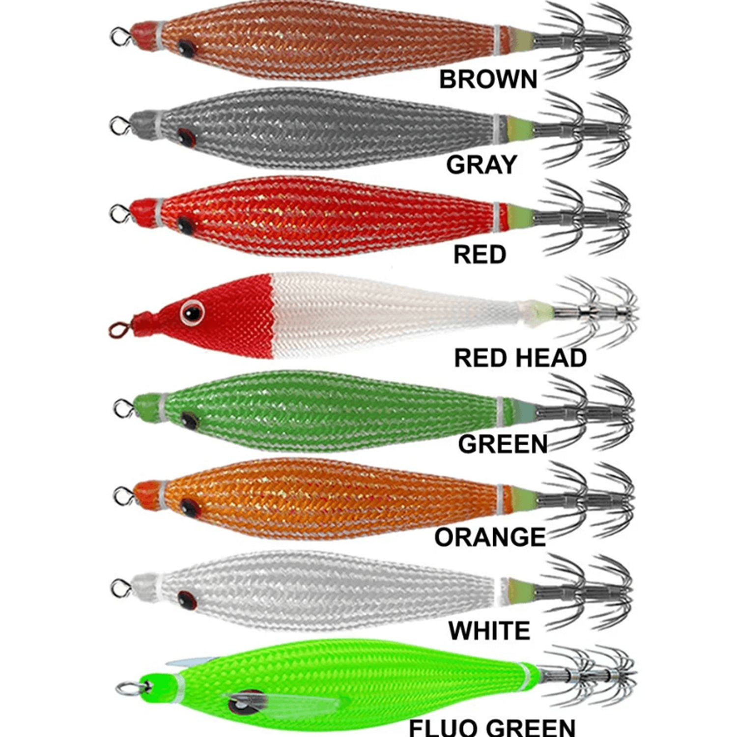 Gerçek balık derisini taklit eden hassas detaylara sahip renk desenlere ve Floş dokuma kumaş kaplama Glow gövdeye sahip kalamar zokası.