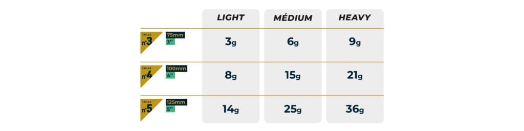 Gövde Ağırlıkları: NO3: 3 g NO4: 8 g NO5: 13,5 g